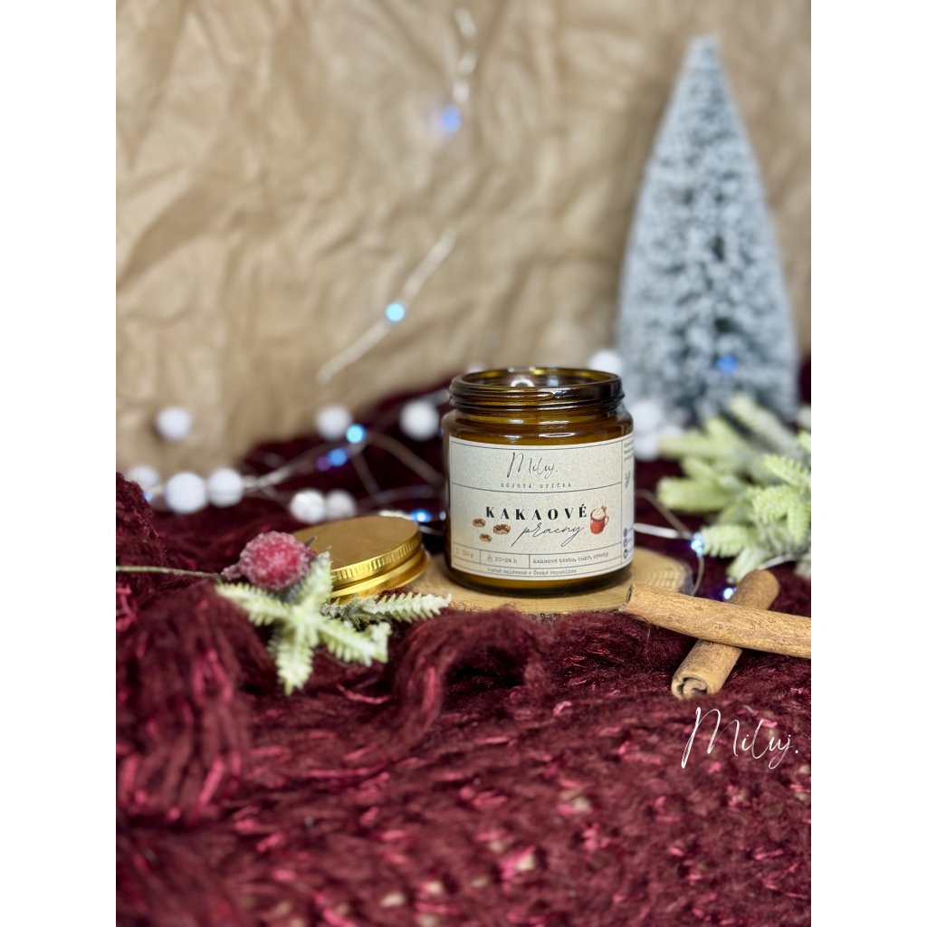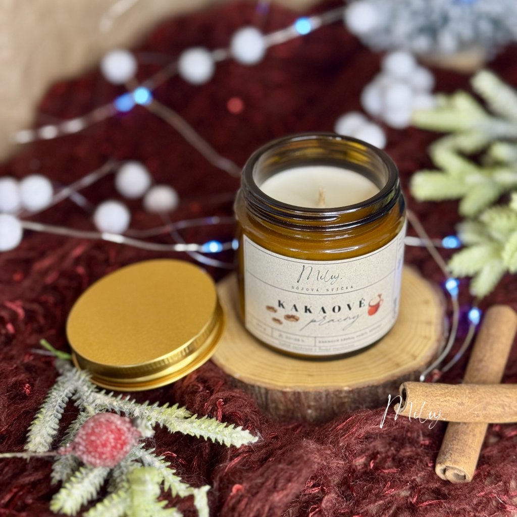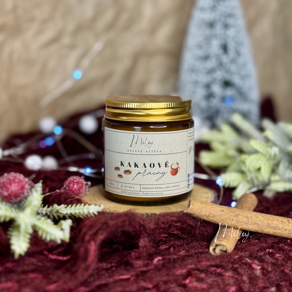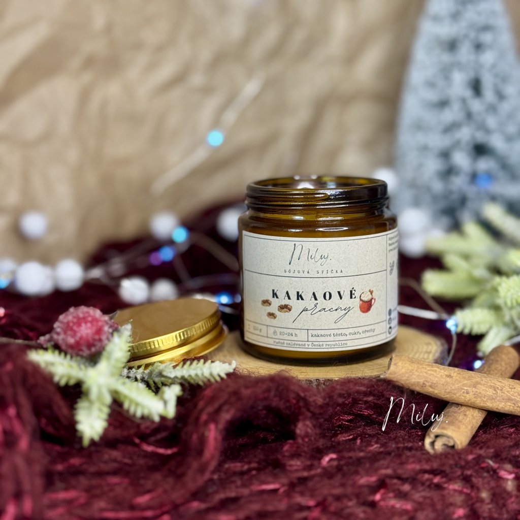 Sójová svíčka s vůní čerstvě upečené kakaové pracny.