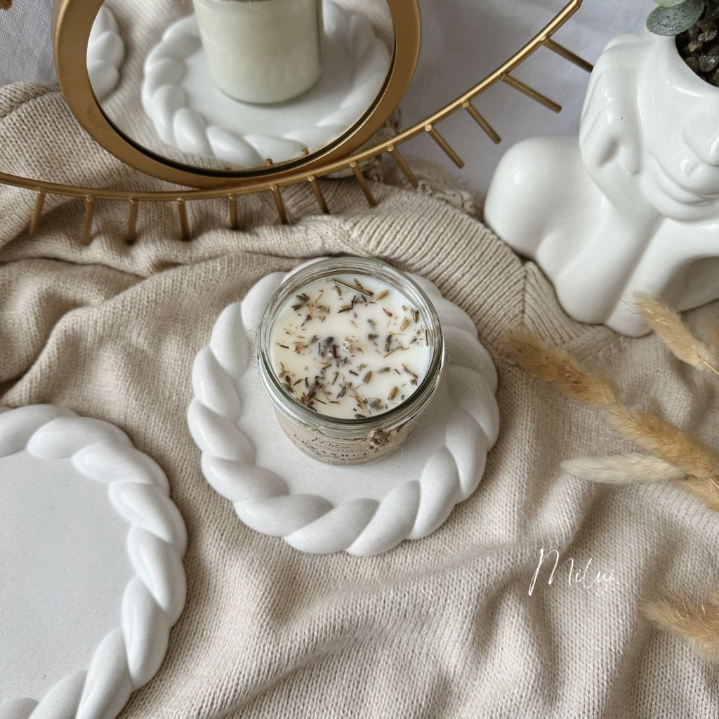 Dekorační podtácek v přírodním a minimalistickém designu na svíčku.