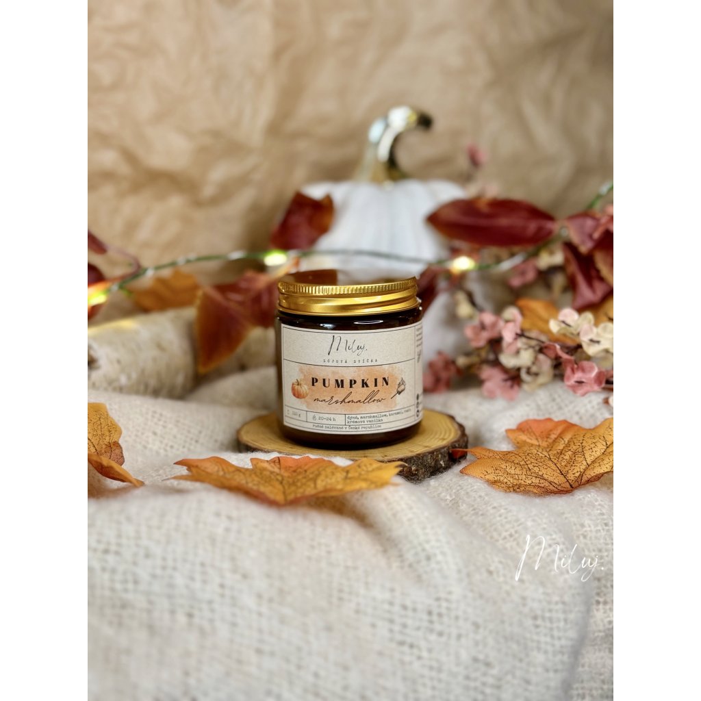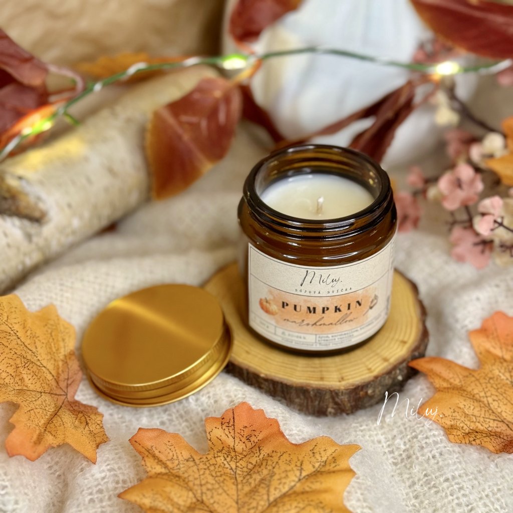 Sójová svíčka s vůní dýně a sladkého marshmallow, karamelu, cukru a krémové vanilky.