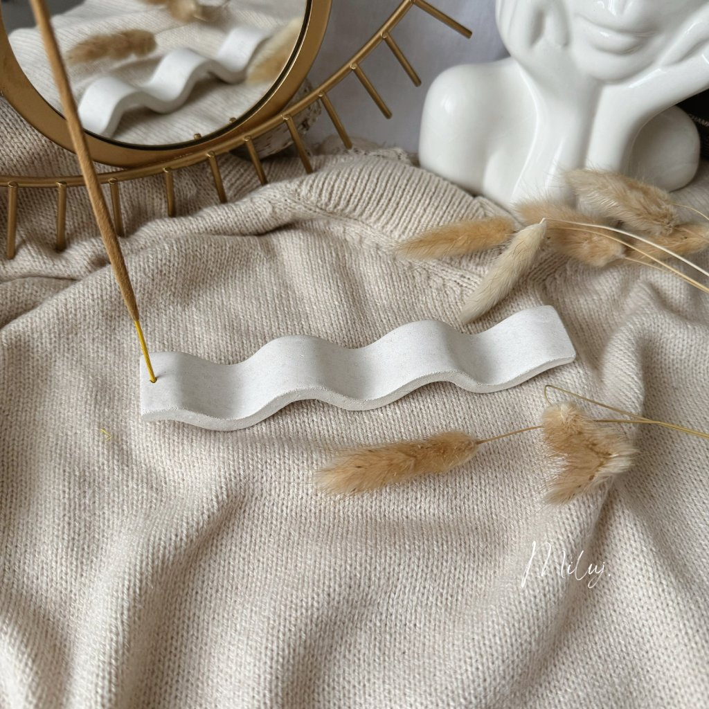 Dekorační stojánek na vonné tyčinky v přírodním a minimalistickém designu.