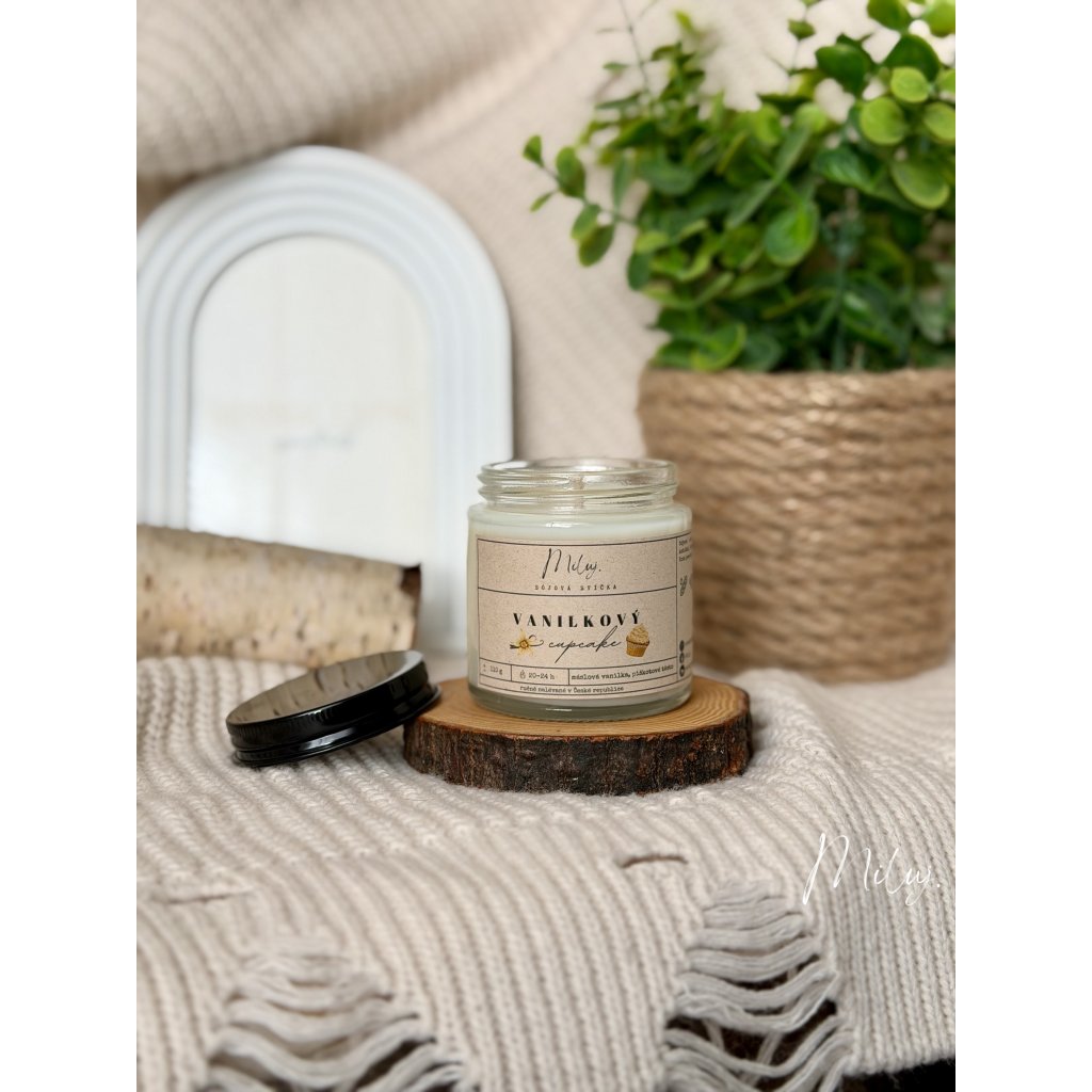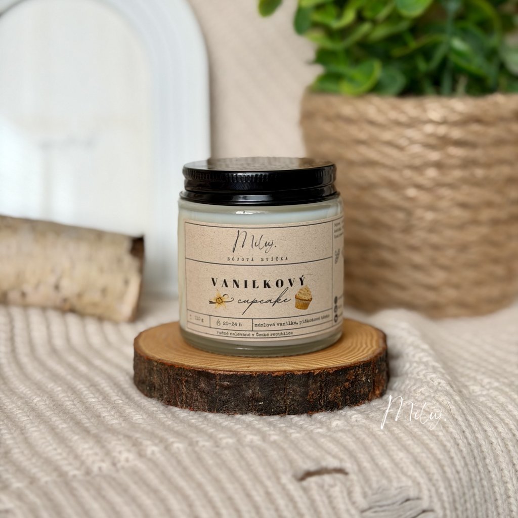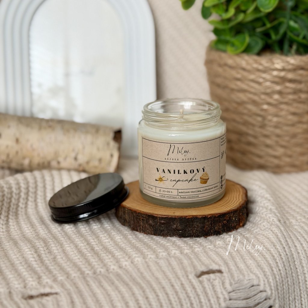 Sójová svíčka s máslovou vůní vanilkových košíčků.